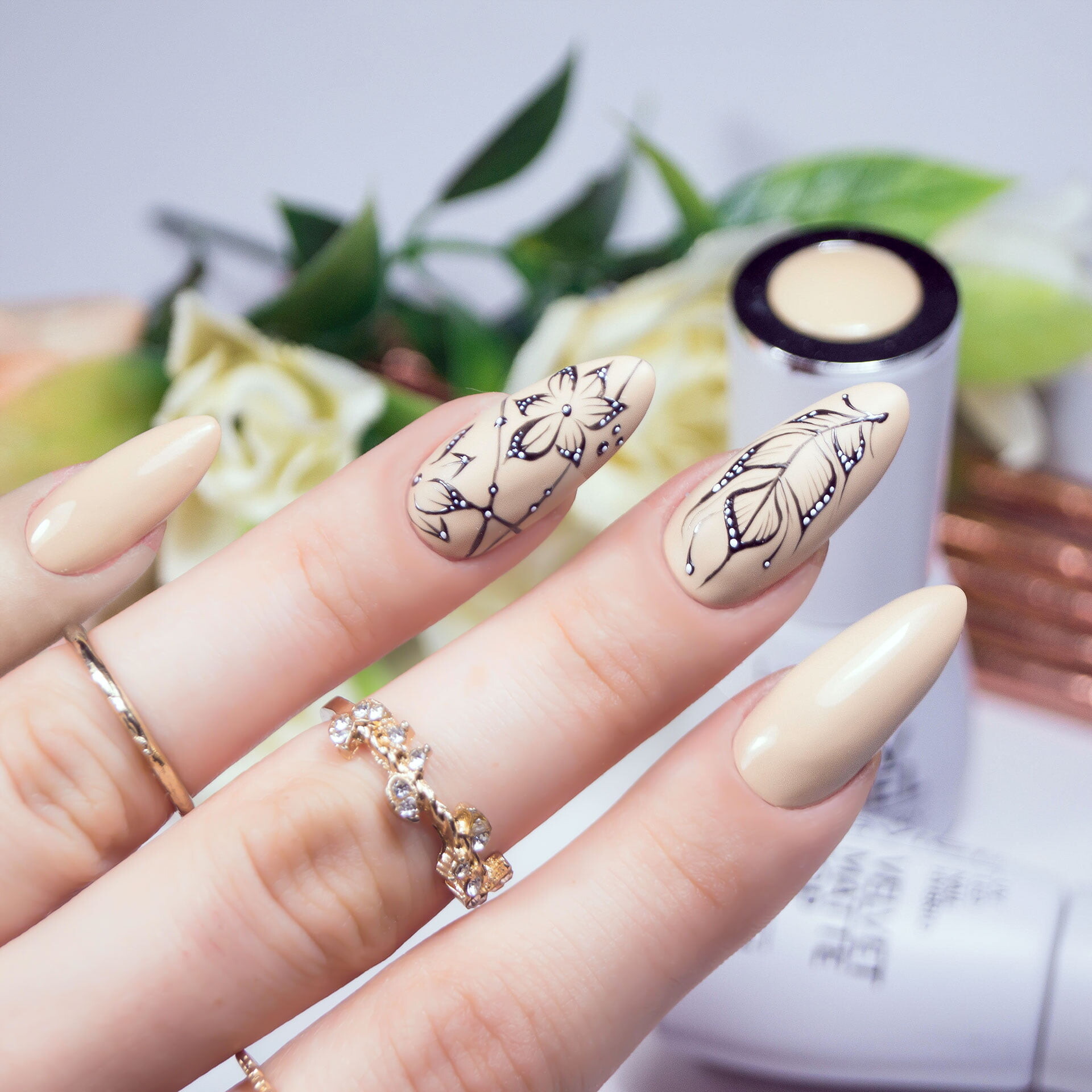 Izuzetno elegantna bijela bočica sa zlatnim čepom i indikatorom boje koji olakšava rad, u sebi krije srednje gust i kremast lak koji daje punu pokrivenost sa samo 2 tanka sloja.