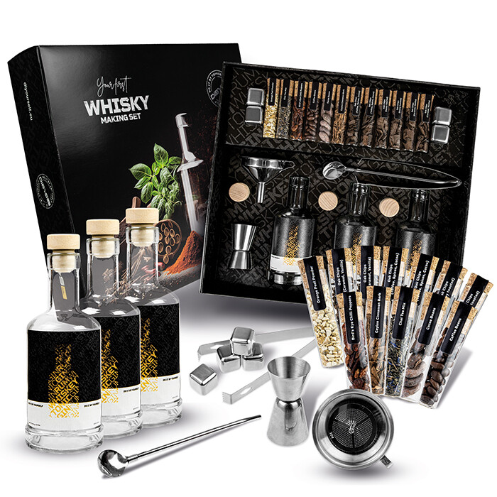 Pretvori svoju kuhinju u malu “destileriju” — bez stvarne destilacije! Ovaj DIY set služi za aromatiziranje legalno kupljene bazne alkoholne tekućine (npr. votka) kako bi dobila profil inspiriran whiskyjem: note hrasta, vanilije i karamele. Idealan za poklon entuzijastima, tematske večeri ili kućne degustacije.