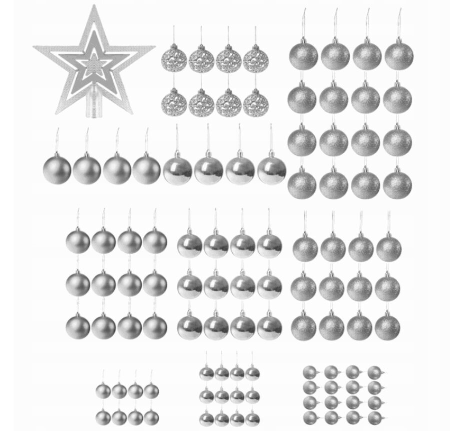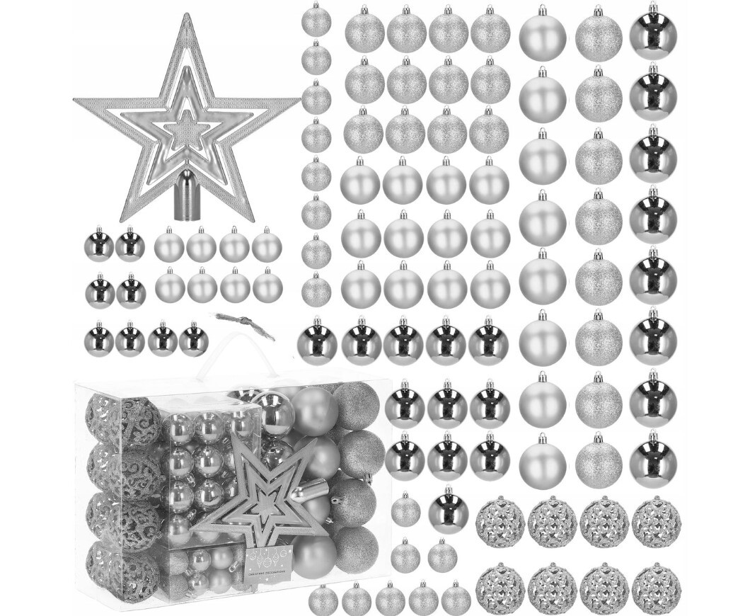 SET BOŽIĆNIH KUGLICA XXL 101 KOM SREBRNI UZORCI