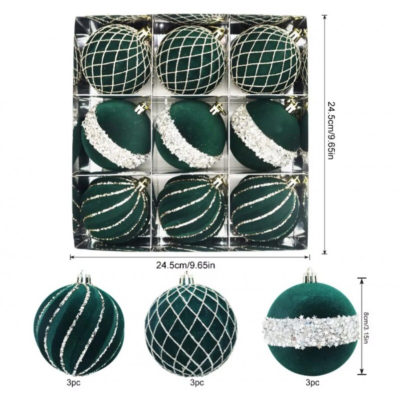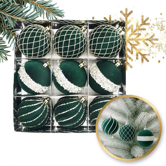 Kuglice Za Bor Zeleni Baršun 9kom 2