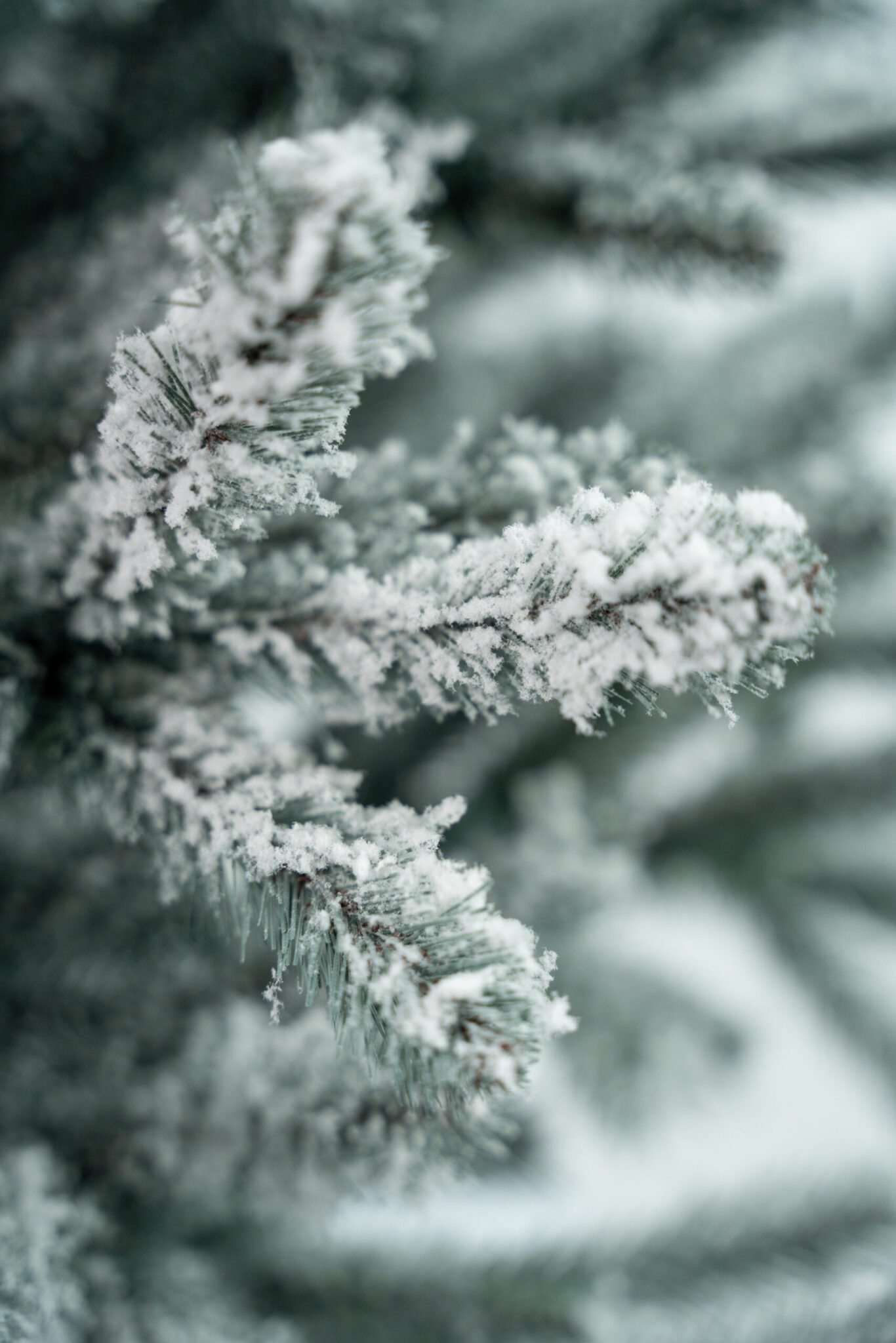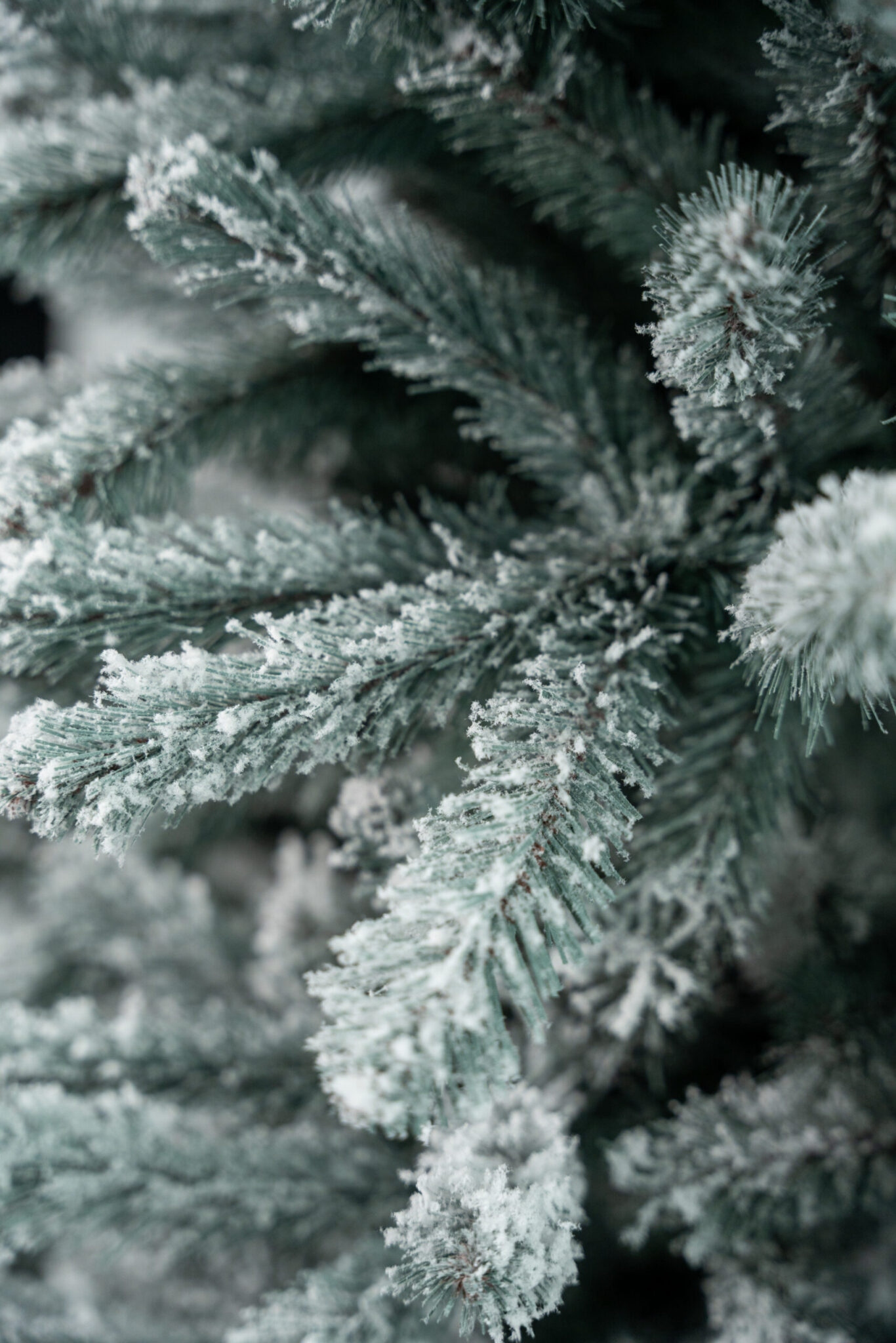 ❄️ Zelena baza bora sa gustim bijelih završecima koji daju vjernu imitaciju snijega