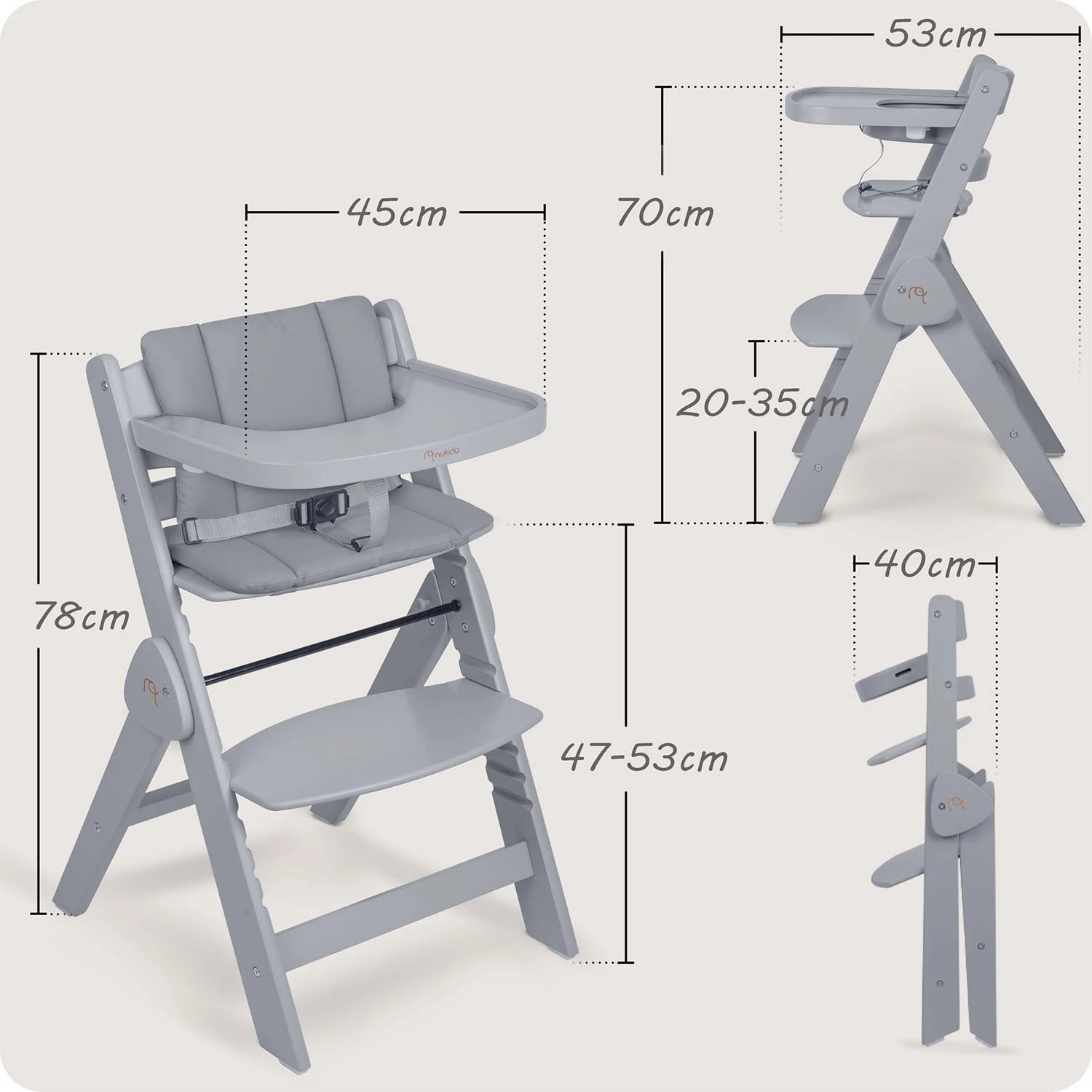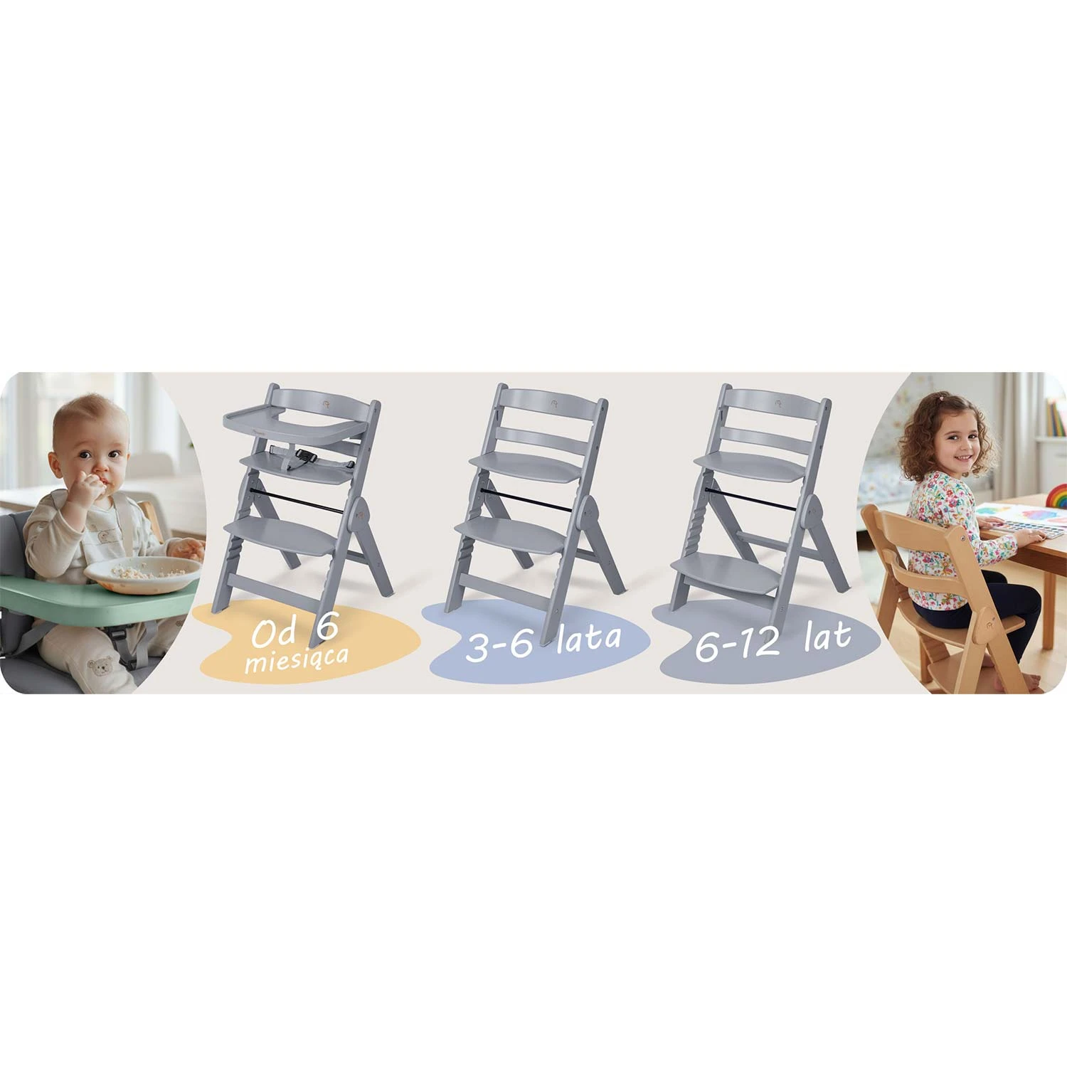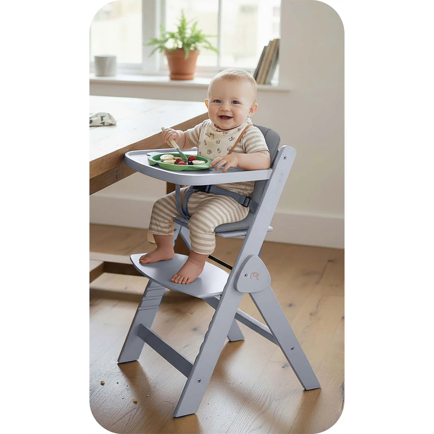 Zahvaljujući posebnom setu sigurnosnih pojaseva i udobnom jastuku, postaje sigurna i udobna prva stolica za vašu bebu. Savršena za prve obroke i zajedničke trenutke za stolom.