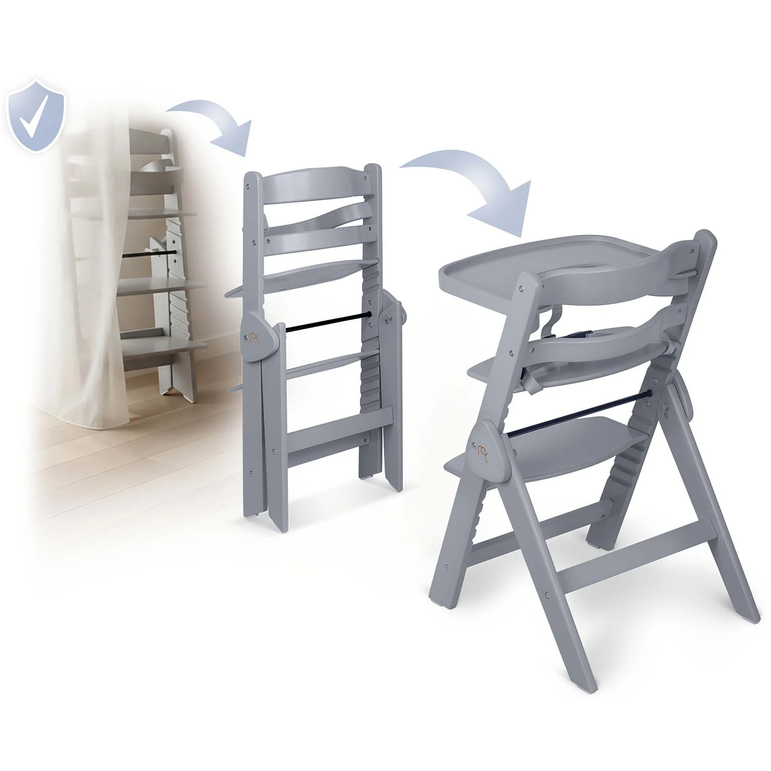 Kako vaše dijete raste, tako se i hranilica razvija! Jednostavno uklonite pladanj i podesite visinu sjedala i oslonca za noge, a hranilica se pretvara u savršeno mjesto za objedovanje za obiteljskim stolom. Stabilna, ergonomska i uvijek na pravoj visini.