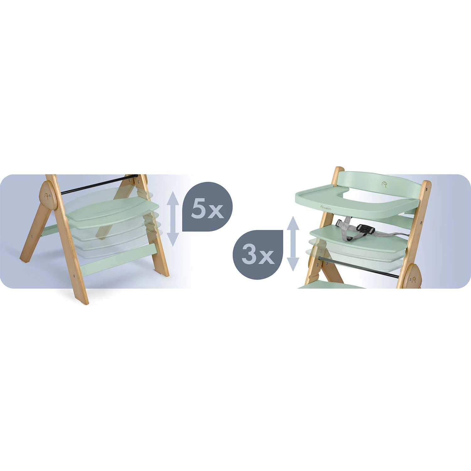 Kako vaše dijete raste, tako se i hranilica razvija! Jednostavno uklonite pladanj i podesite visinu sjedala i oslonca za noge, a hranilica se pretvara u savršeno mjesto za objedovanje za obiteljskim stolom. Stabilna, ergonomska i uvijek na pravoj visini.