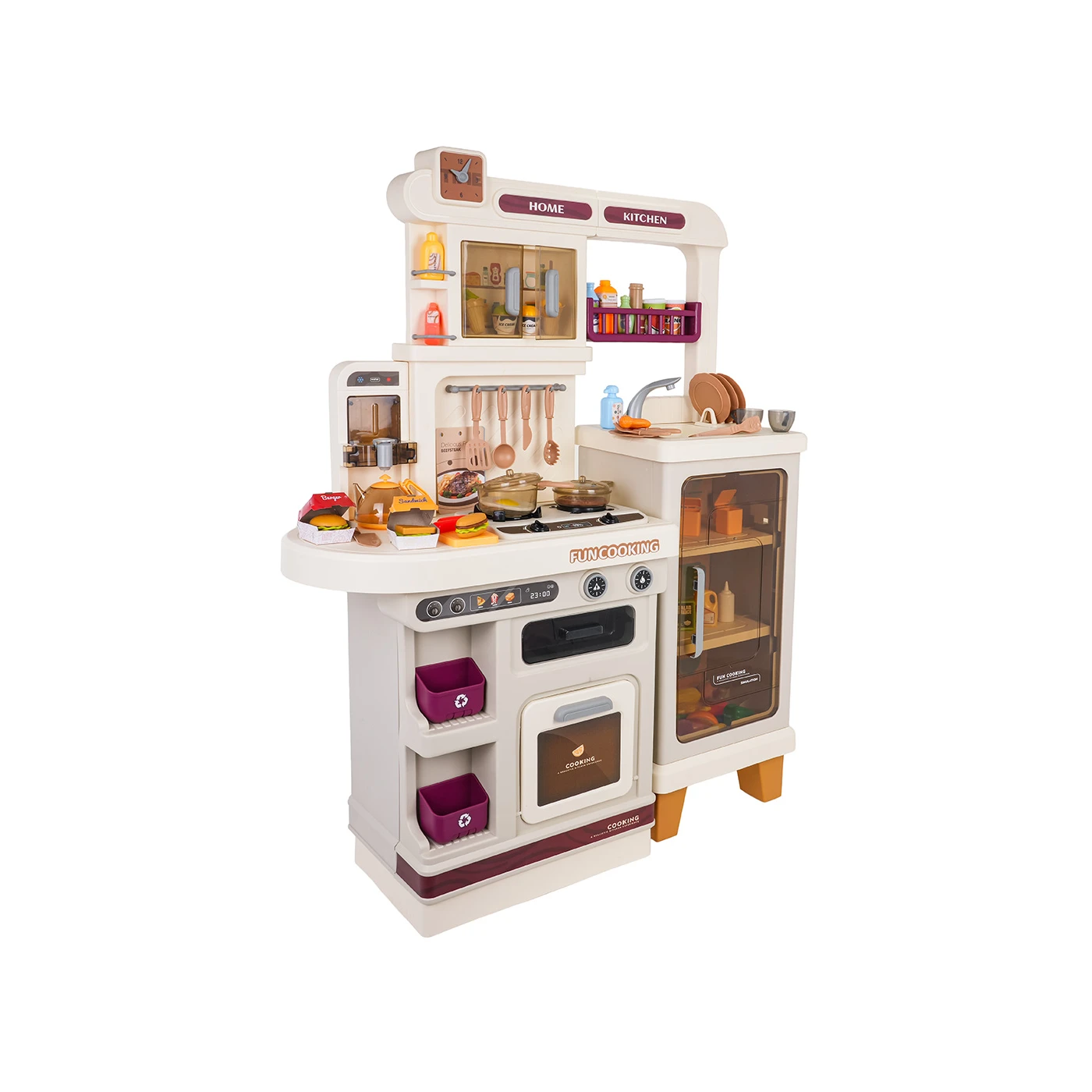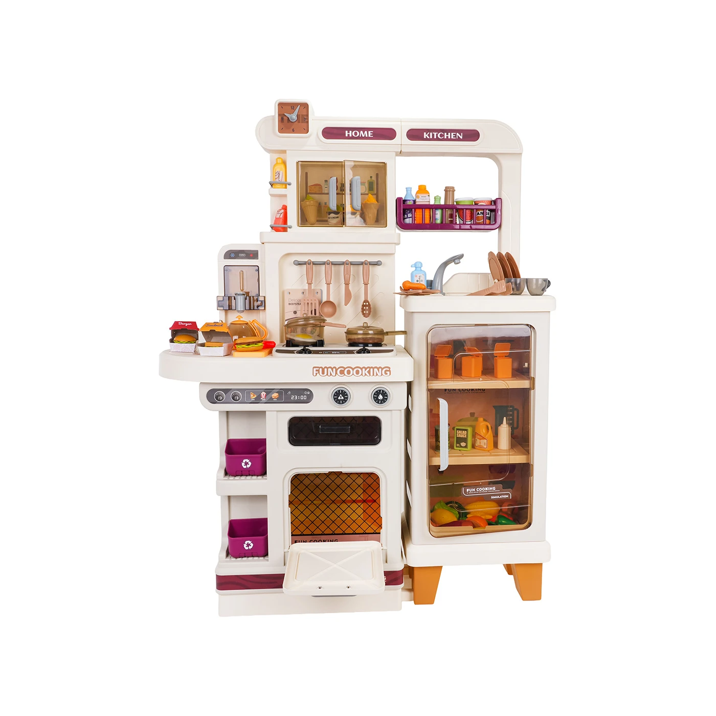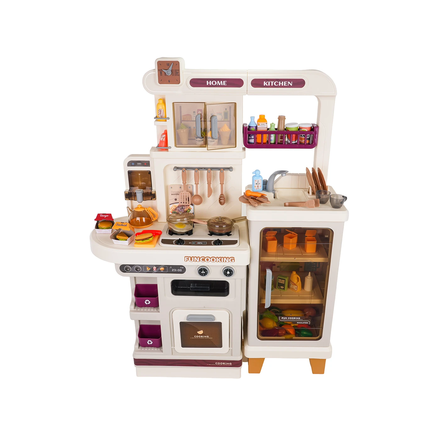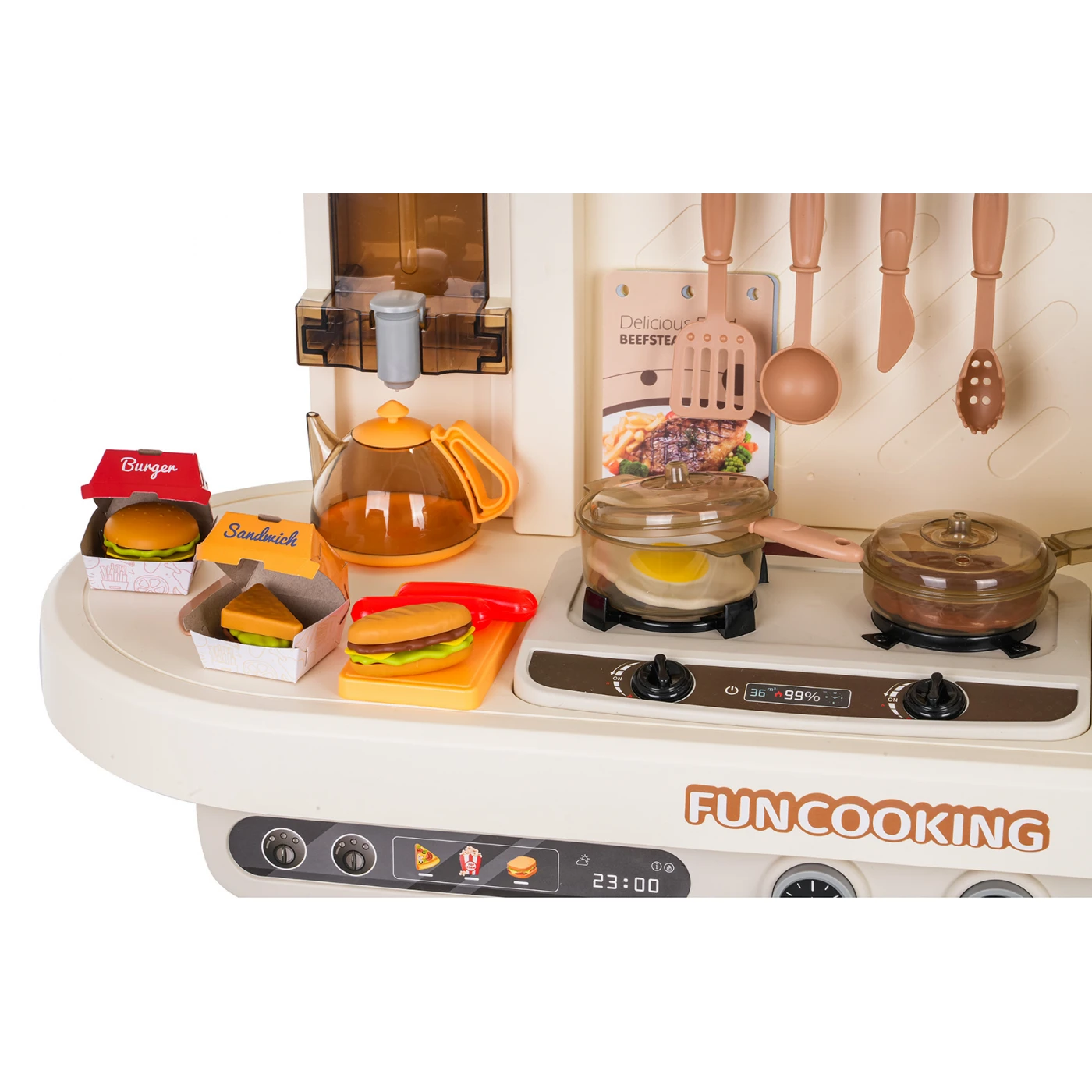 Višenamjenska kuhinja s funkcijama svjetla, zvuka, vode i pare za djecu stariju od tri godine. Kuhinja je izrađena od visokokvalitetne plastike u živim bojama. Set se sastoji od 93 dijela i bogato je opremljen kuhinjskim priborom i namirnicama. Kuhinja ima funkcionalnu slavinu iz koje teče voda, osvijetljeni plamenici proizvode zvukove prženja i kuhanja, a para se diže iz lonca. Kuhinja također uključuje hladnjak i pećnicu. Ormarići i police pružaju dovoljno prostora za sav pribor. Igračku napajaju 3 x AA 1,5 V baterije (nisu uključene).