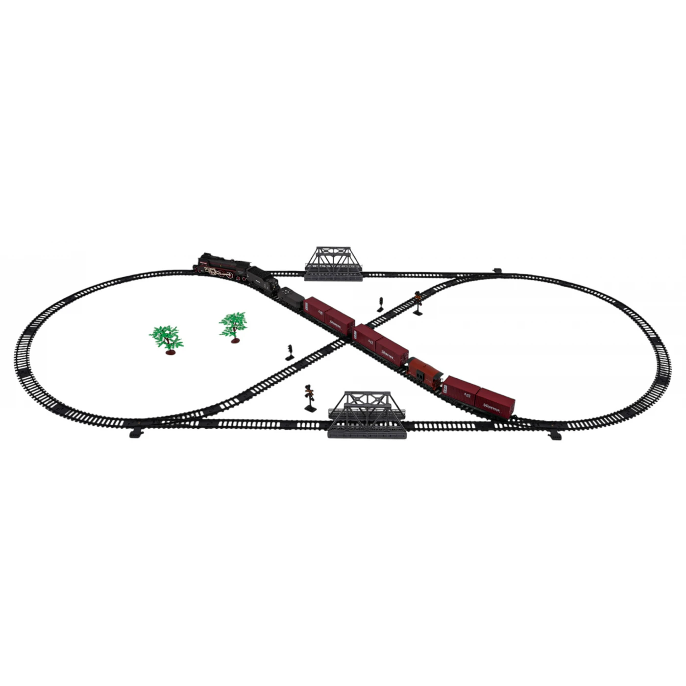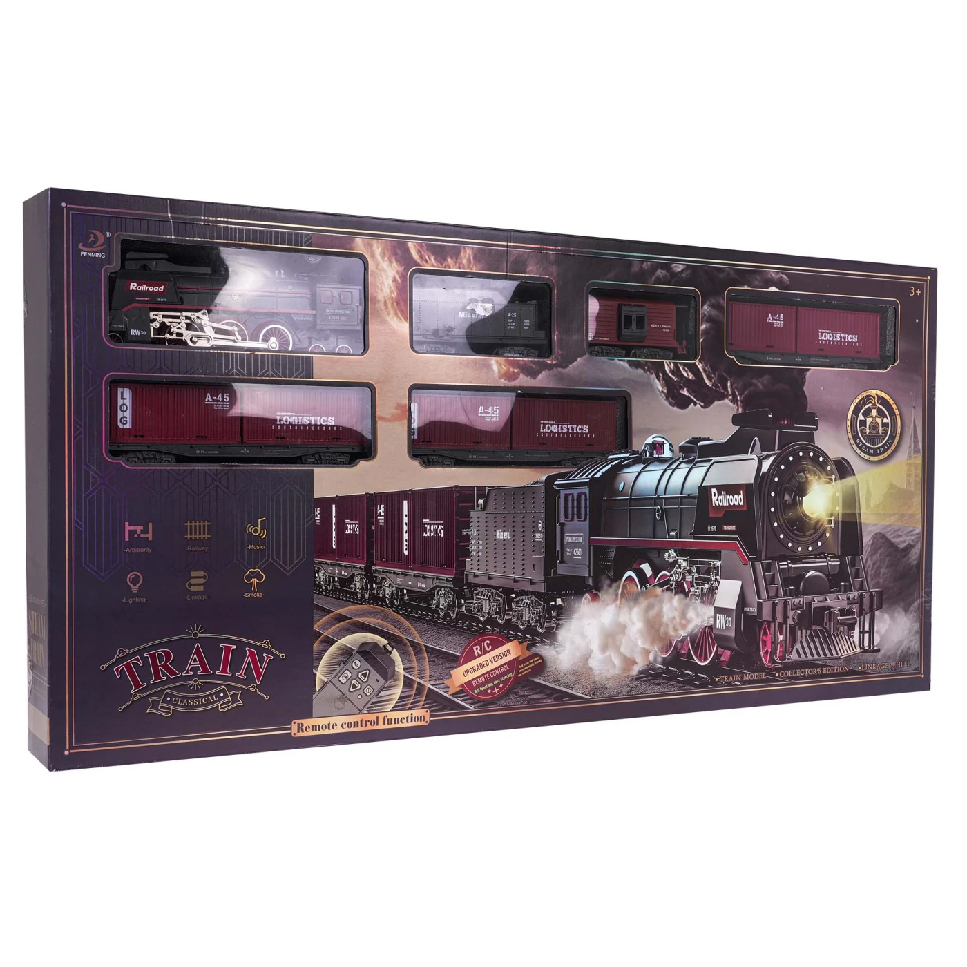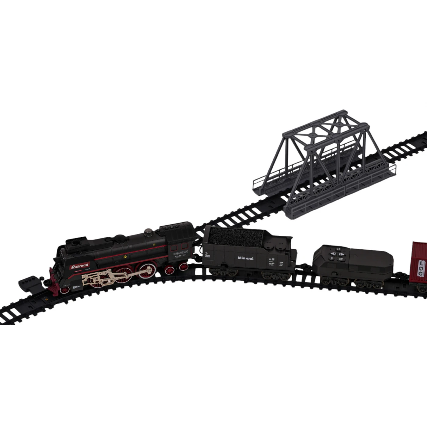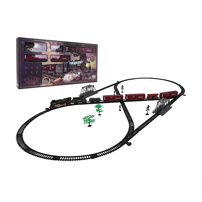Ovaj retro vlak s funkcijom dima, zvukovima vožnje i uključenim tračnicama savršen je za djecu od 3 godine i više. Igračku napaja punjiva baterija od 3,7 V (uključena), dok daljinski upravljač koristi 2 x 1,5 V AA baterije (nisu uključene). Daljinski upravljač također funkcionira kao jedan od vagona. Tijekom vožnje, lokomotiva ispušta dim iz dimnjaka i sa strane (nakon što se nadopuni vodom – pipeta za vodu je uključena). Osim toga, osvjetljava se svjetlo postavljeno na prednjoj strani. Tračnice se lako spajaju, što ih čini sigurnima i izdržljivima.