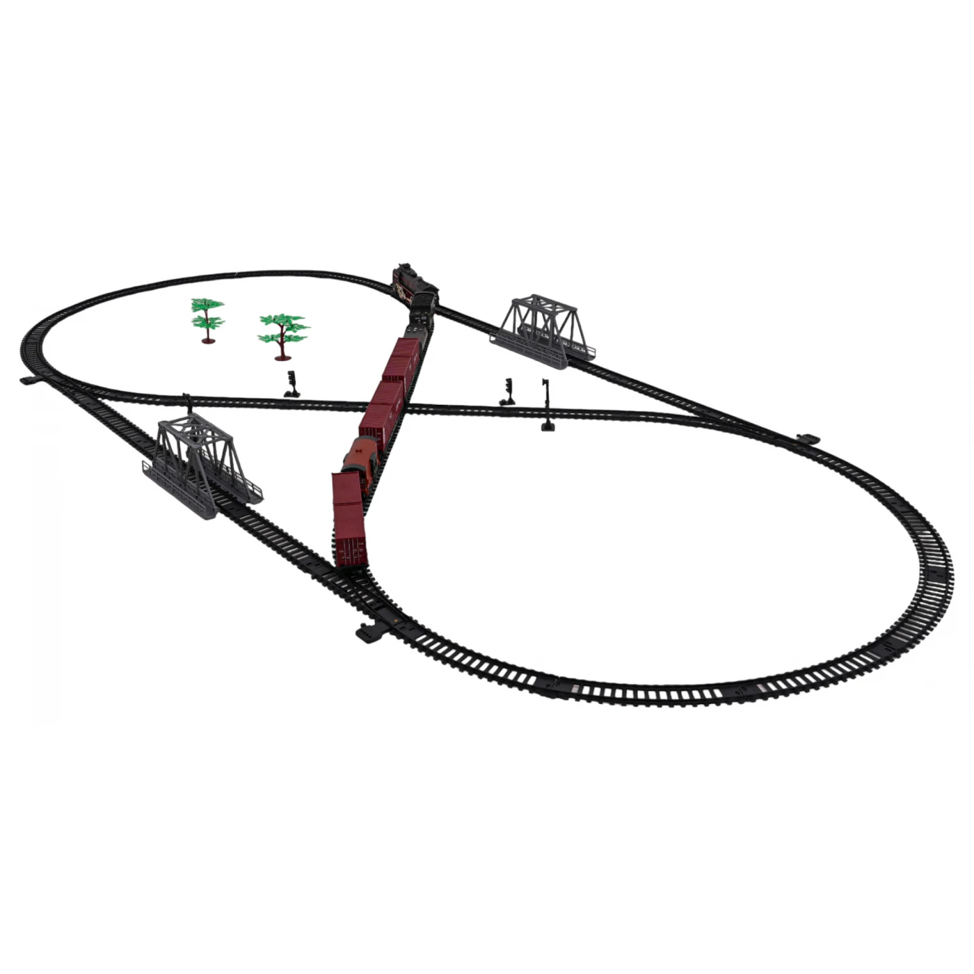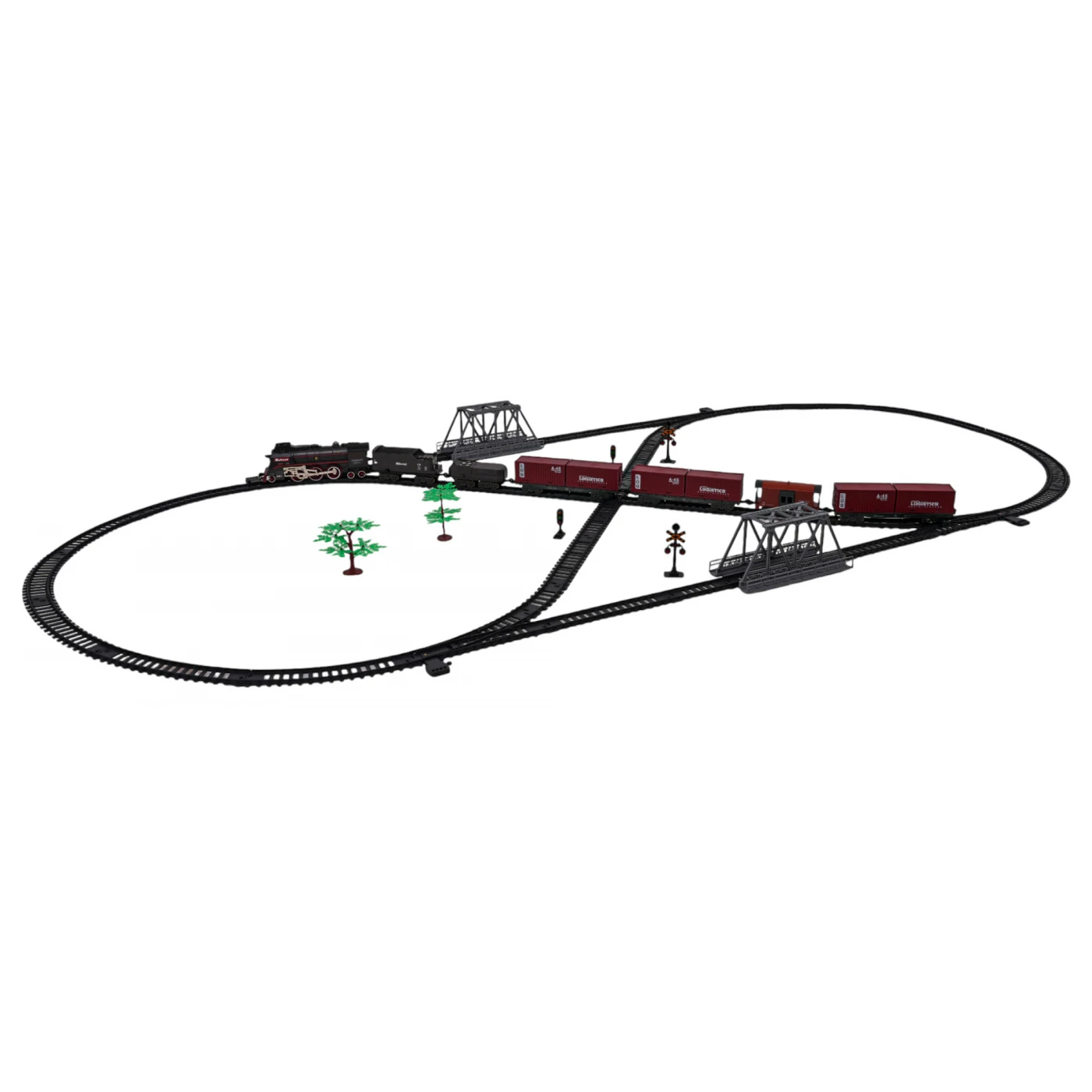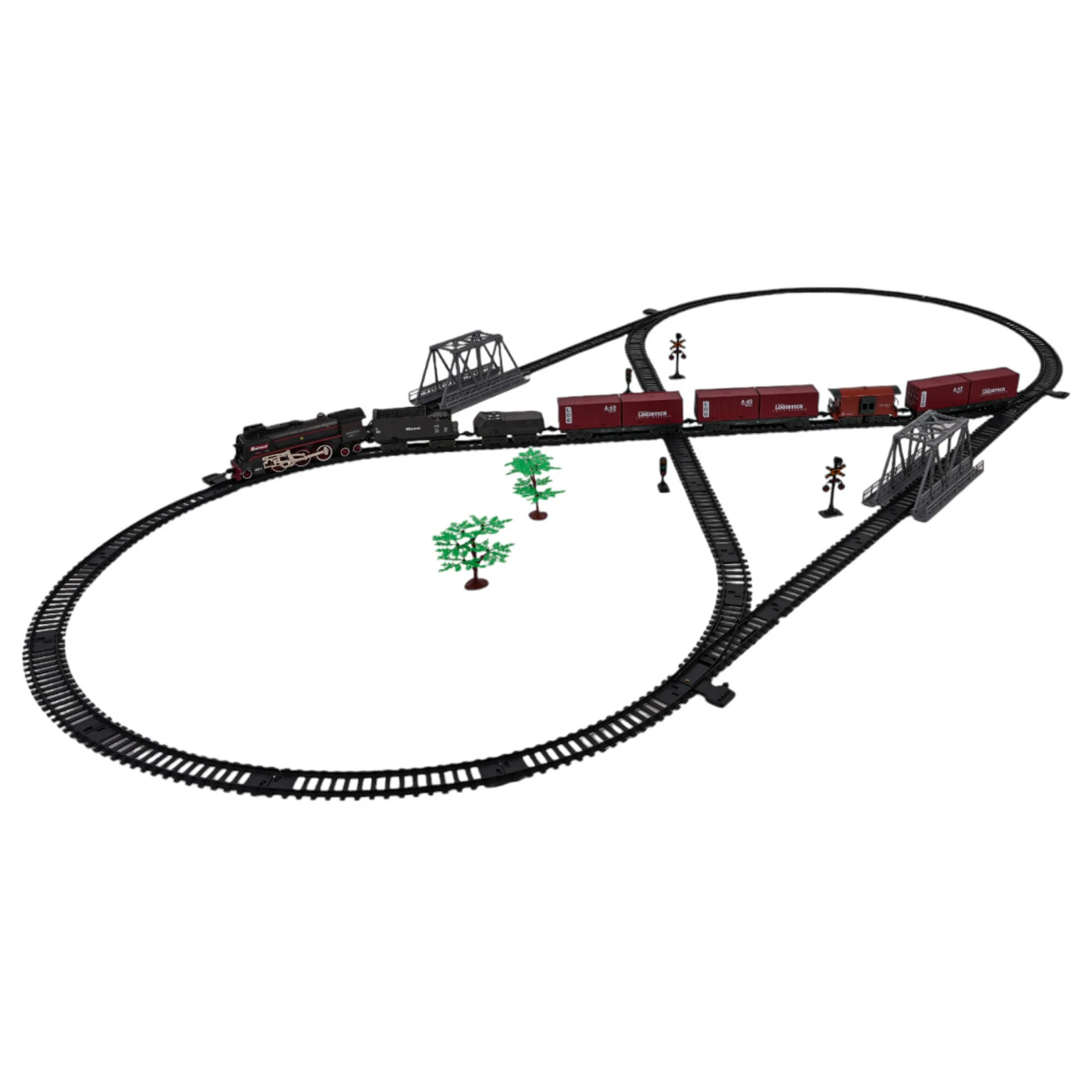 Ovaj retro vlak s funkcijom dima, zvukovima vožnje i uključenim tračnicama savršen je za djecu od 3 godine i više. Igračku napaja punjiva baterija od 3,7 V (uključena), dok daljinski upravljač koristi 2 x 1,5 V AA baterije (nisu uključene). Daljinski upravljač također funkcionira kao jedan od vagona. Tijekom vožnje, lokomotiva ispušta dim iz dimnjaka i sa strane (nakon što se nadopuni vodom – pipeta za vodu je uključena). Osim toga, osvjetljava se svjetlo postavljeno na prednjoj strani. Tračnice se lako spajaju, što ih čini sigurnima i izdržljivima.