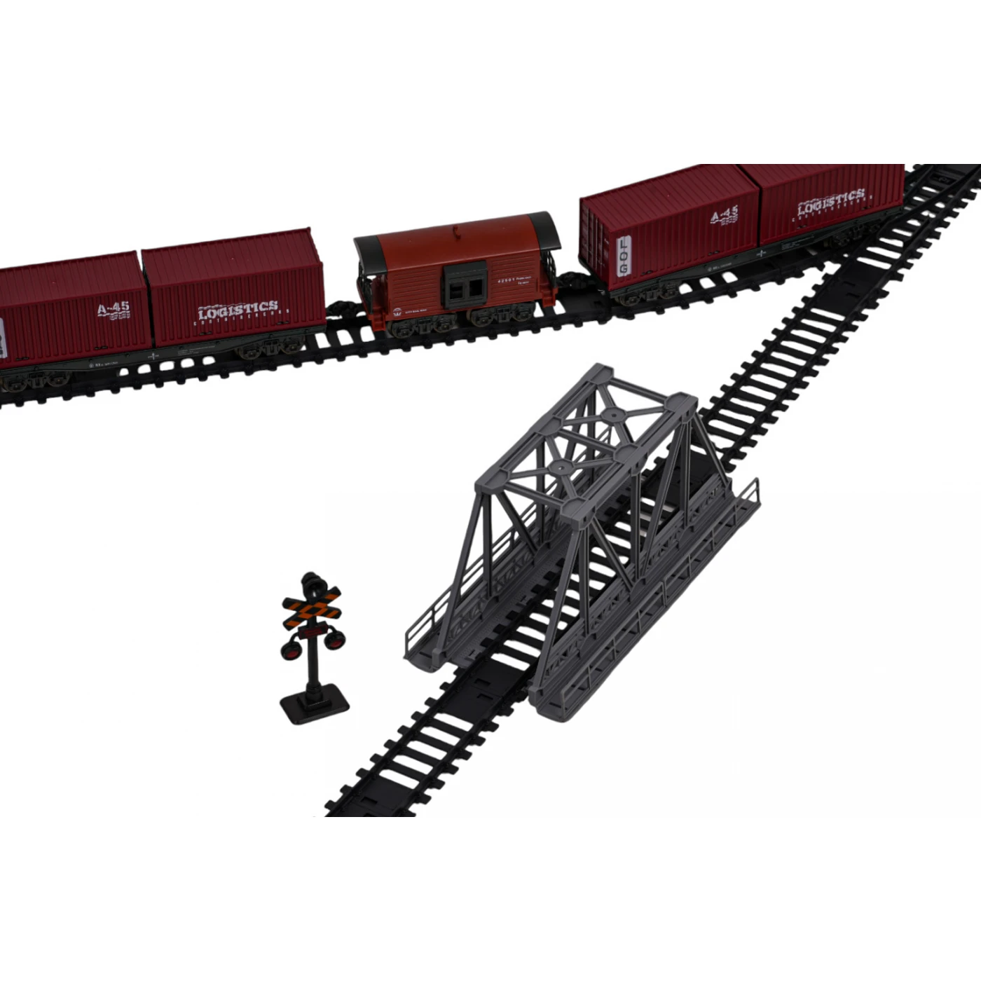 – putnički automobil, – vagon za ugljen, – vagon s daljinskim upravljanjem, – 3 x vagon s kontejnerima, – komponente kolosijeka, – 2 mosta, – 2 znaka, – 2 stabla, – pipeta za vodu, – USB kabel za punjenje, – upute. |