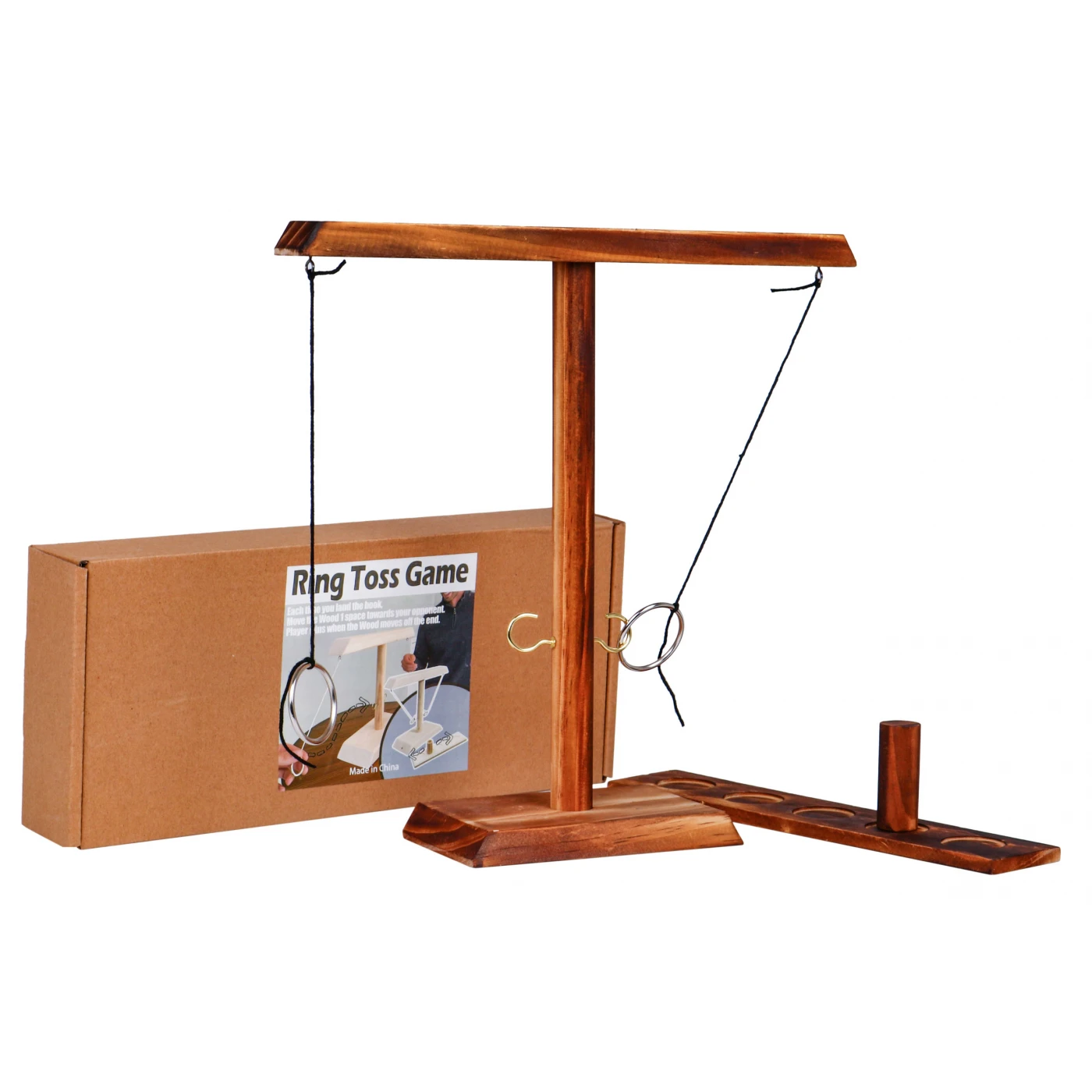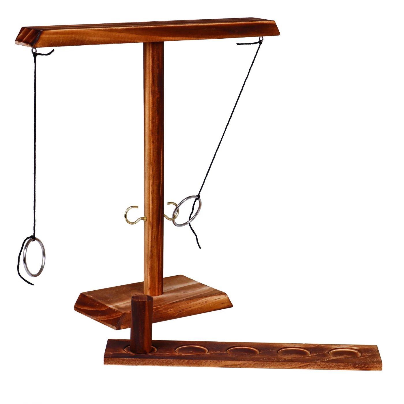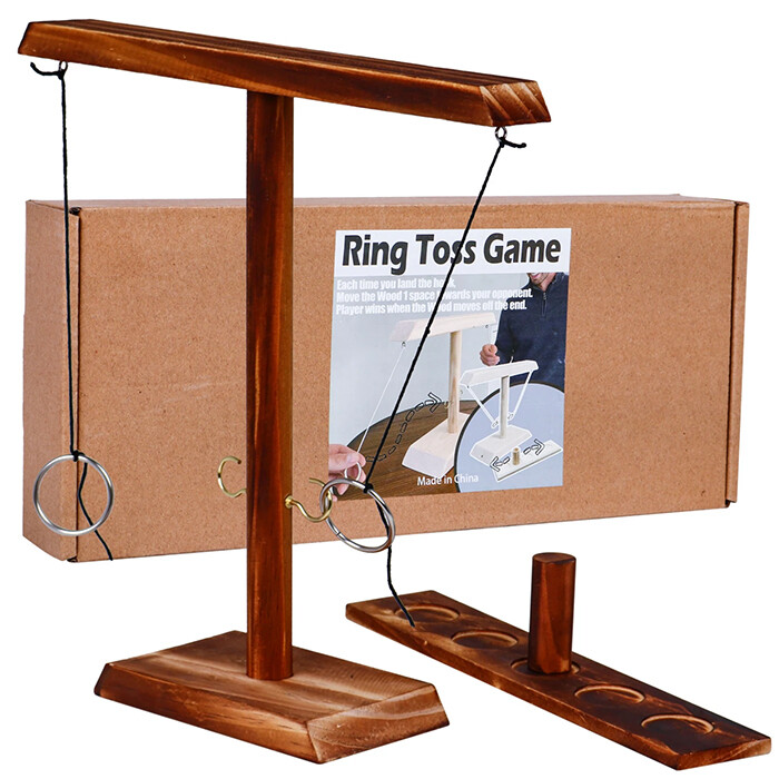 Drvena, zanimljiva igra temeljena na vještini za djecu od 5 godina i stariju, ali i za odrasle. Savršena za zabave, team building događaje i praznike, pružit će sate zabave i poboljšati koordinaciju ruku i očiju. Jednostavna za sastavljanje i rastavljanje, pažljivo izrađena i potpuno jedinstvena. Uključuje tradicionalno bacanje prstena, koji sleti na prsten (kuku). Nakon svakog uspješnog bacanja, igrač mora pomaknuti klin na podlozi prstena prema protivniku. Prvi koji dođe do protivnika pobjeđuje. Napomena: U verziji za odrasle, klin se može zamijeniti čašicom za rakiju. Pravila igre: – postavite drveni klin u središte baze, – pokušajte pogoditi metalni prsten tako da sleti na udicu, – kada pogodite, pomaknite drveni klin za 1 polje prema protivniku, – kada promašite, protivnik ima potez, – prvi koji stigne do protivnika pobjeđuje. |