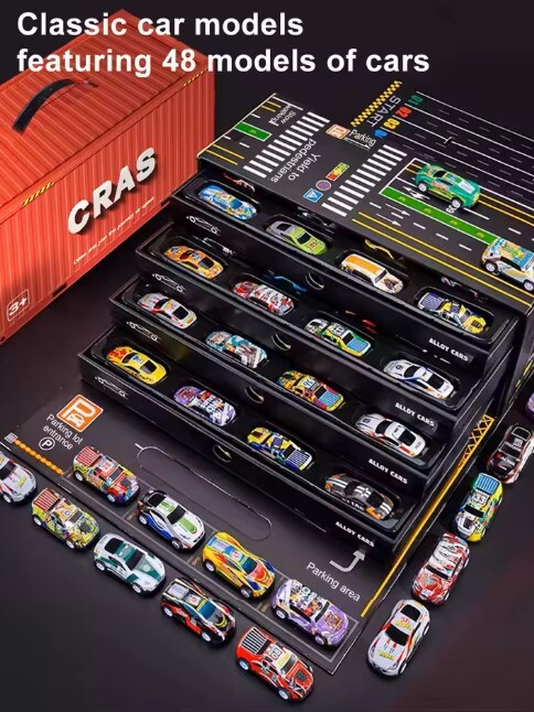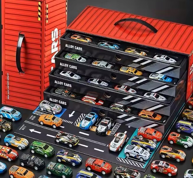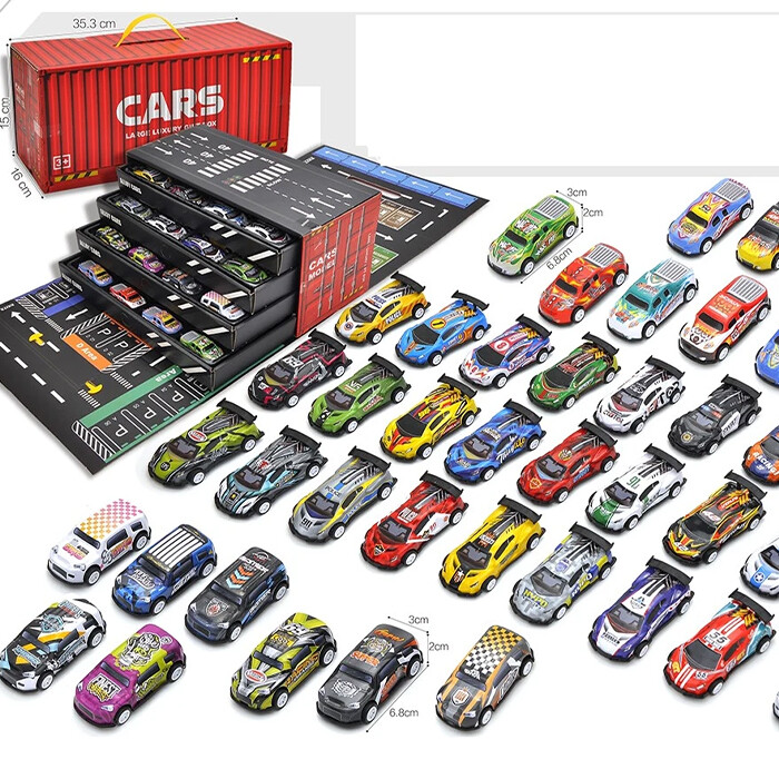 U paketu se nalazi do 48 metalnih autića u četiri različite vrste, što omogućuje dinamične igre, utrke i kolekciju za svako dijete. Savršen poklon za rođendane, blagdane ili posebne prilike.