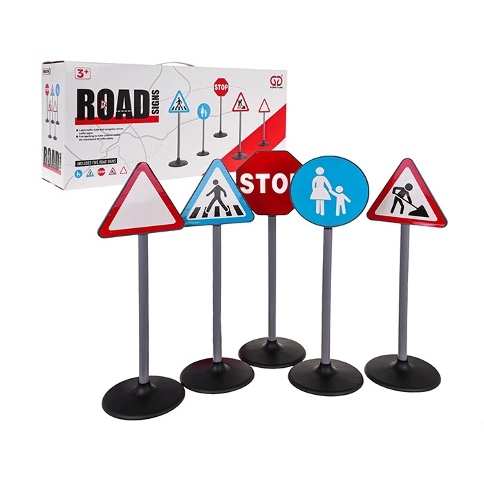 | Set od 5 prometnih znakova za djecu od 3 godine i više. Set uključuje prometne znakove: znak stop, pješački prijelaz, trokut upozorenja, znakove za radove na cesti i pješačku stazu. Ovi znakovi su pomno izrađeni i izgledaju vrlo realistično. Veličine su prilagođene visini vašeg djeteta. Idealna su igračka za učenje prometnih pravila.