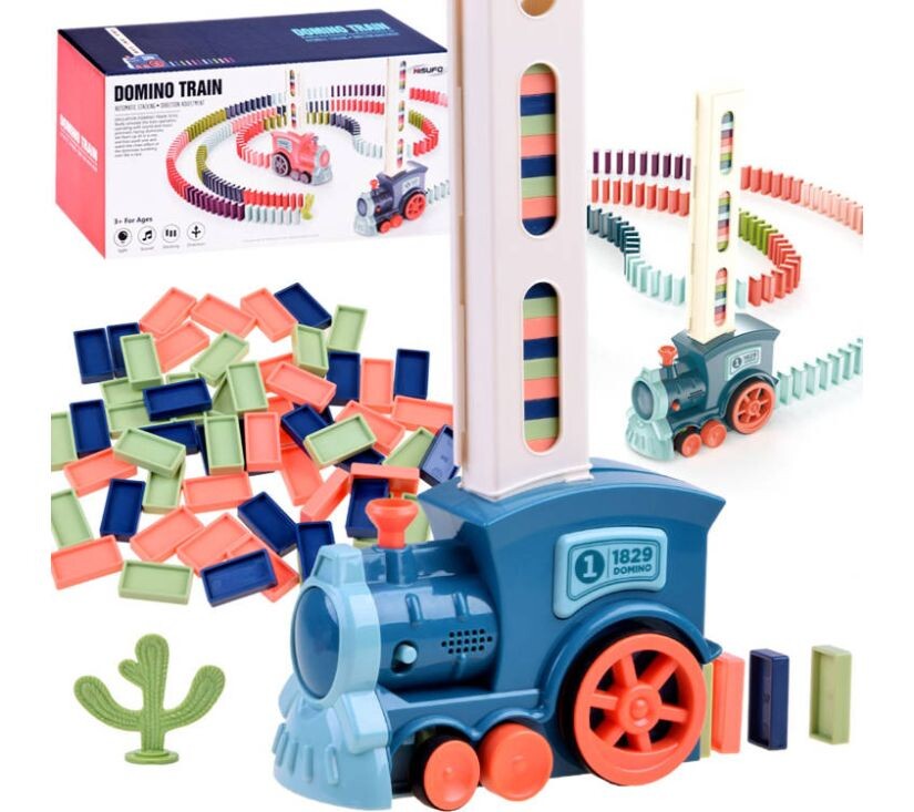 Igračka se sastoji od šarene, interaktivne lokomotive i seta domino kocki. Ovo je idealan prijedlog za djecu koja su strastvena za svijet željeznice i građevine. Mlađa će djeca biti oduševljena mogućnošću da kucaju kocke, eksperimentiraju s njihovim slaganjem i grade jednostavne strukture. Starija će djeca otkriti fascinaciju promatranja domino efekta, kada uzastopno padajući blokovi stvaraju dinamičnu simfoniju pokreta i zvuka.