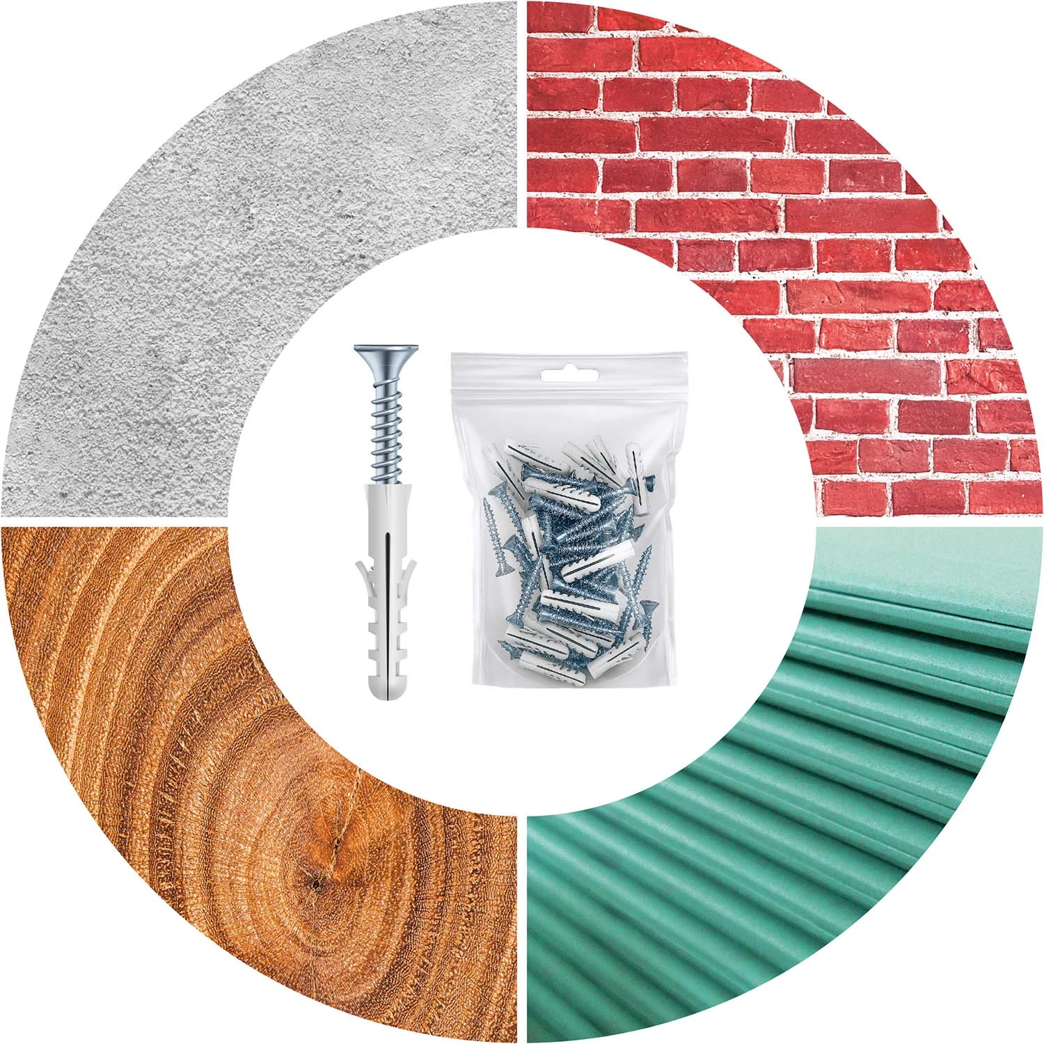Ekspanzijski vijci uključeni u set idealni su za montažu na različite površine, kao što su: