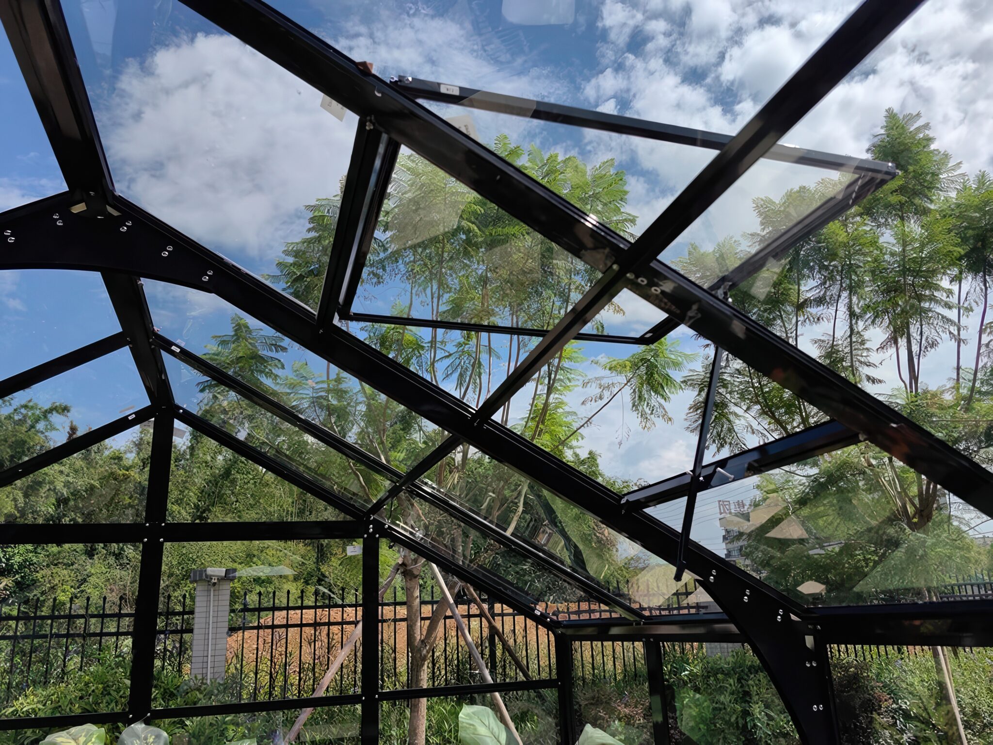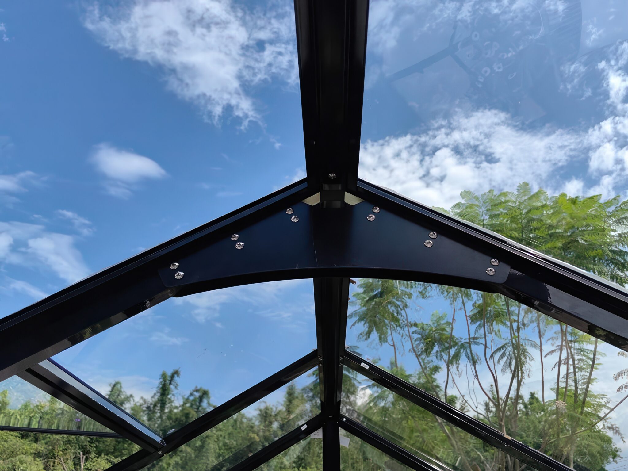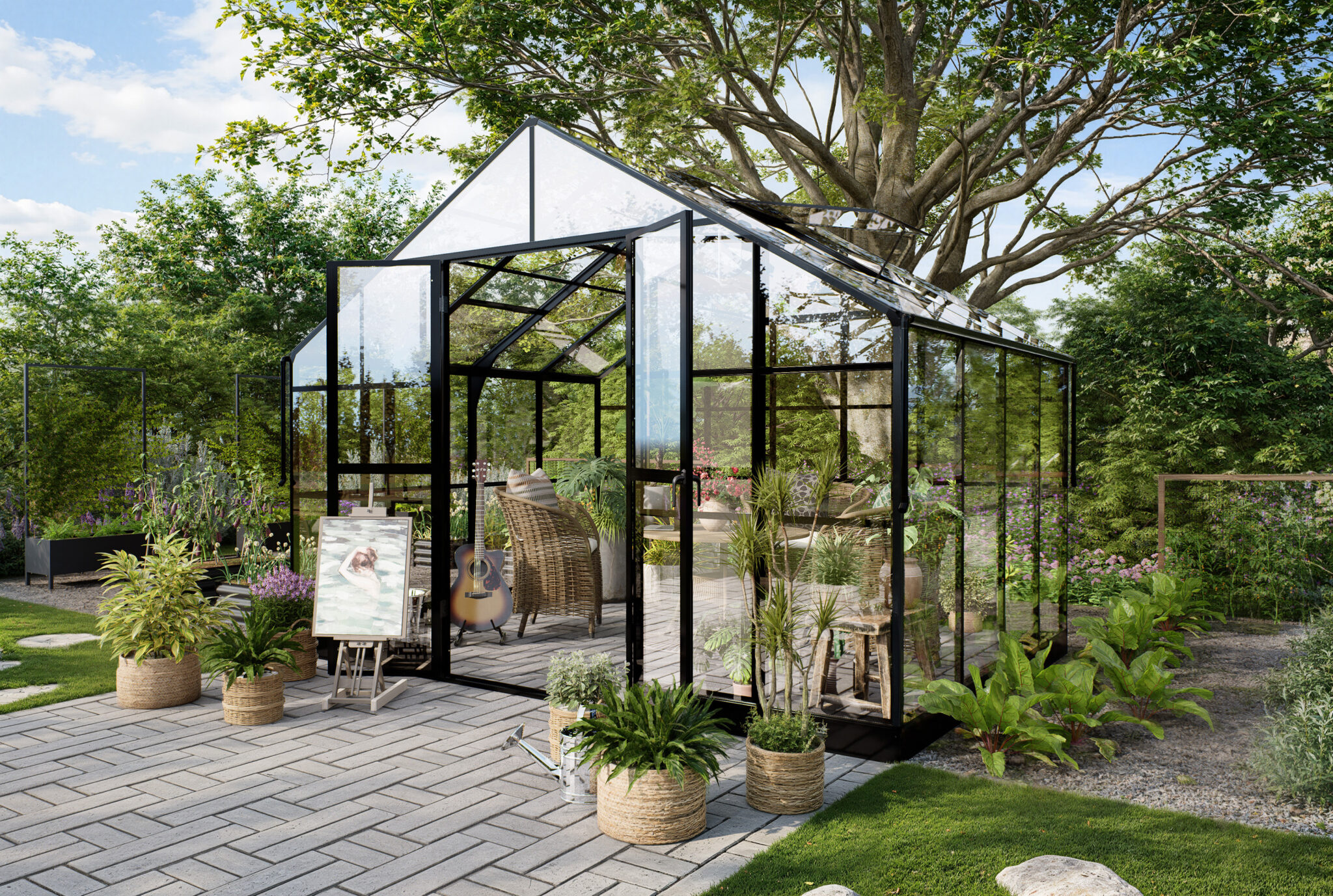 Ako želiš staklenik koji izgleda elegantno (crna izvedba + “efekt stakla”), a pritom je napravljen da izdrži ozbiljne uvjete u vrtu, ovaj Cultivo Solid PC je odličan izbor. Kombinira aluminijsku konstrukciju (1,0–1,8 mm) s panelima od punog (kompaktnog) polikarbonata 2 mm s UV zaštitom, uz praktične detalje poput dvokrilnih vrata s bravom, ventilacijskih prozora i integriranih oluka.