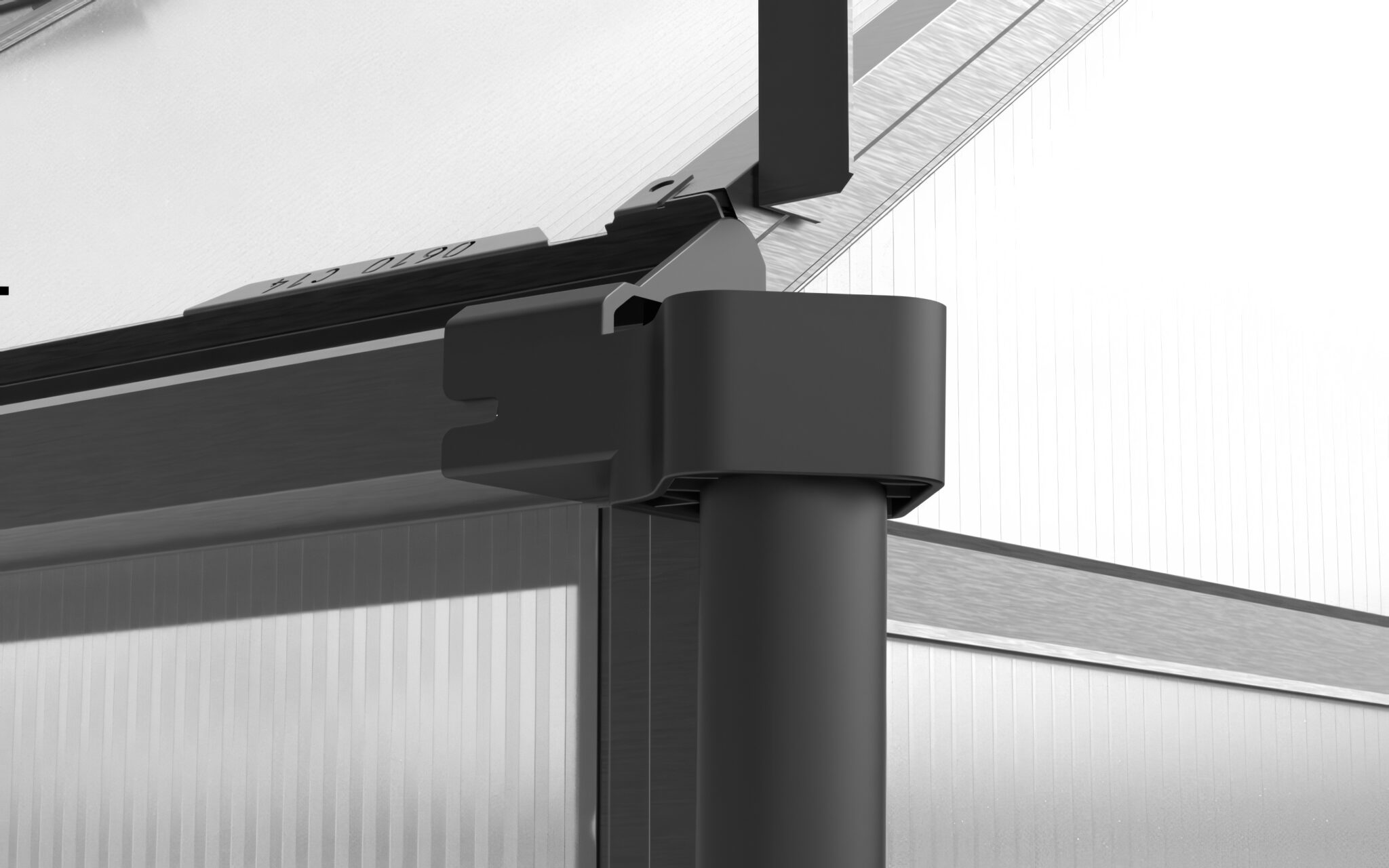 Umjesto da se paneli “hvataju” klipsama, kod Slide-In izvedbe se polikarbonat uvlači direktno u profile. Rezultat: