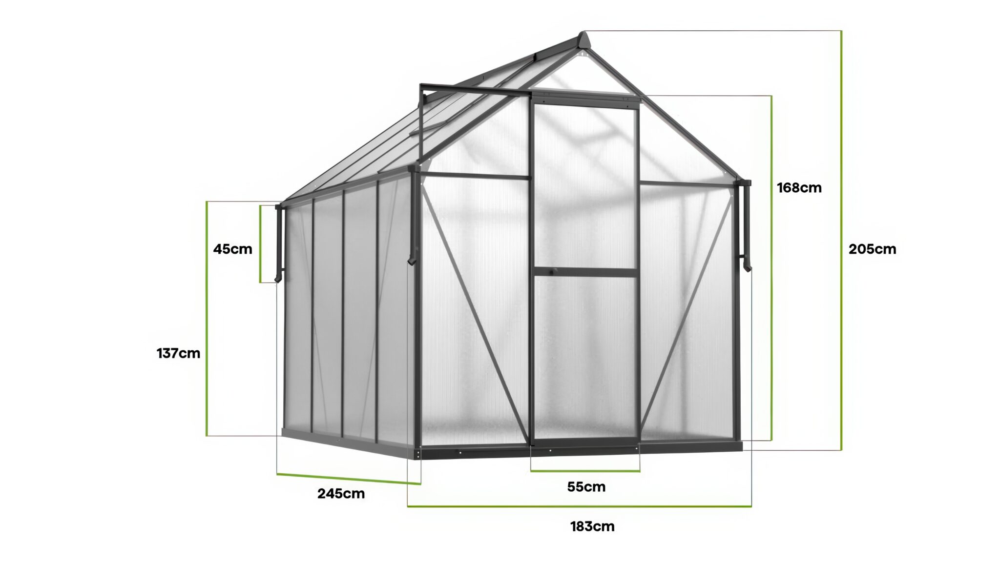 Staklenik polikarbonatni 183x245cm crni – Cultivo