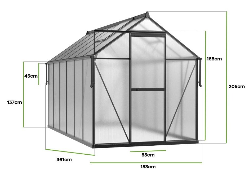 Staklenik polikarbonatni 183x361cm crni – Cultivo