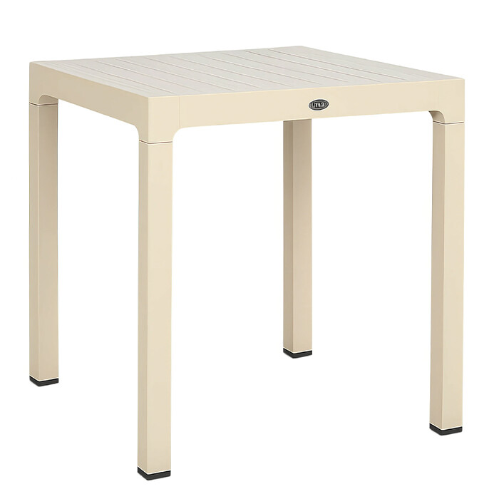 Stol je izrađen od polipropilena ojačanog staklenim vlaknima, što mu daje odličnu čvrstoću i otpornost na svakodnevno korištenje. Površina ima teksturu koja imitira prirodne daske, pa izgleda “toplo” i moderno u isto vrijeme.