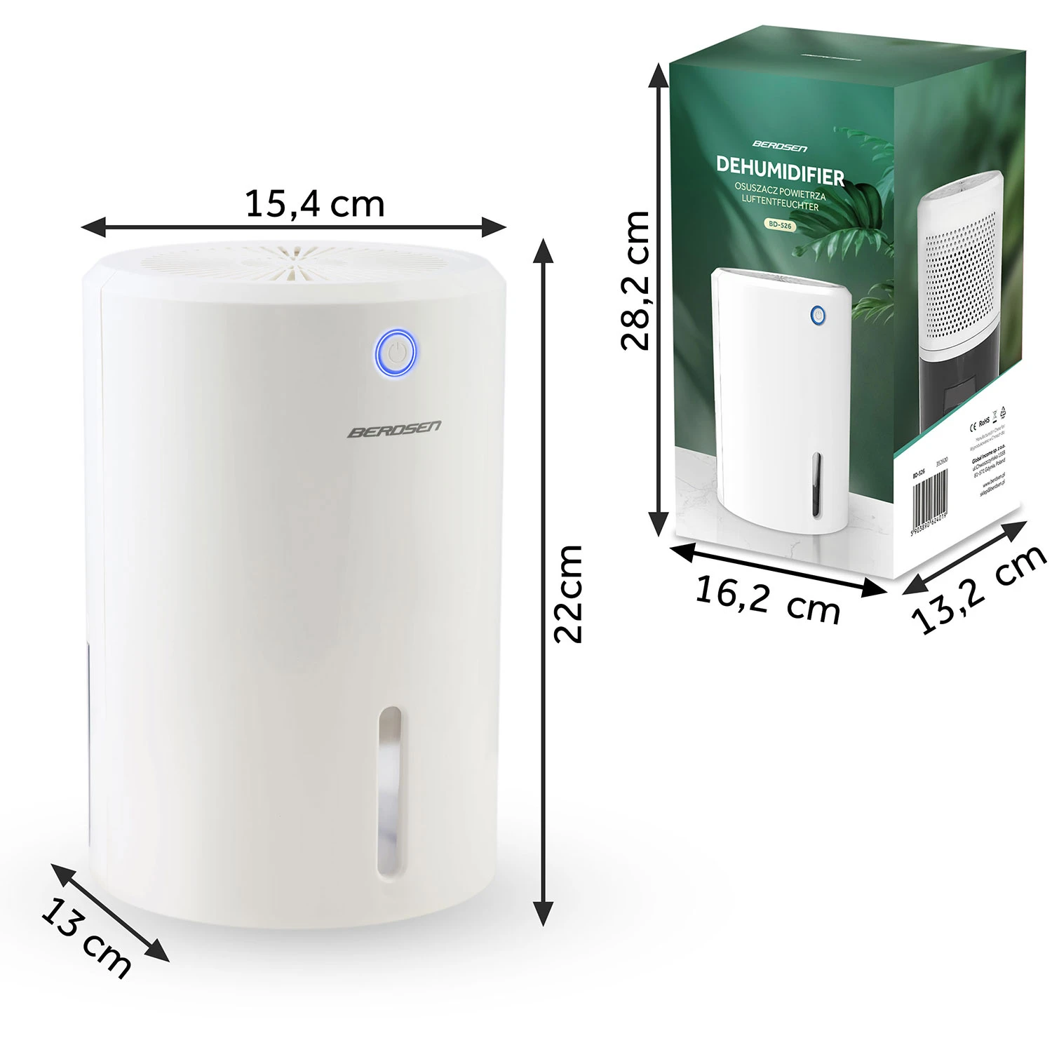Odvlaživač zraka BD-526 je kompaktan, profesionalan i funkcionalan uređaj koji radi s maksimalnim kapacitetom od 280 ml/dan . Odvlaživač zraka BD-526 radi na principu kondenzacije, koja učinkovito kondenzira vlagu iz zraka. To smanjuje koncentraciju gljivica, drozdova i neugodnih mirisa u prostoriji, a istovremeno povećava vašu udobnost.