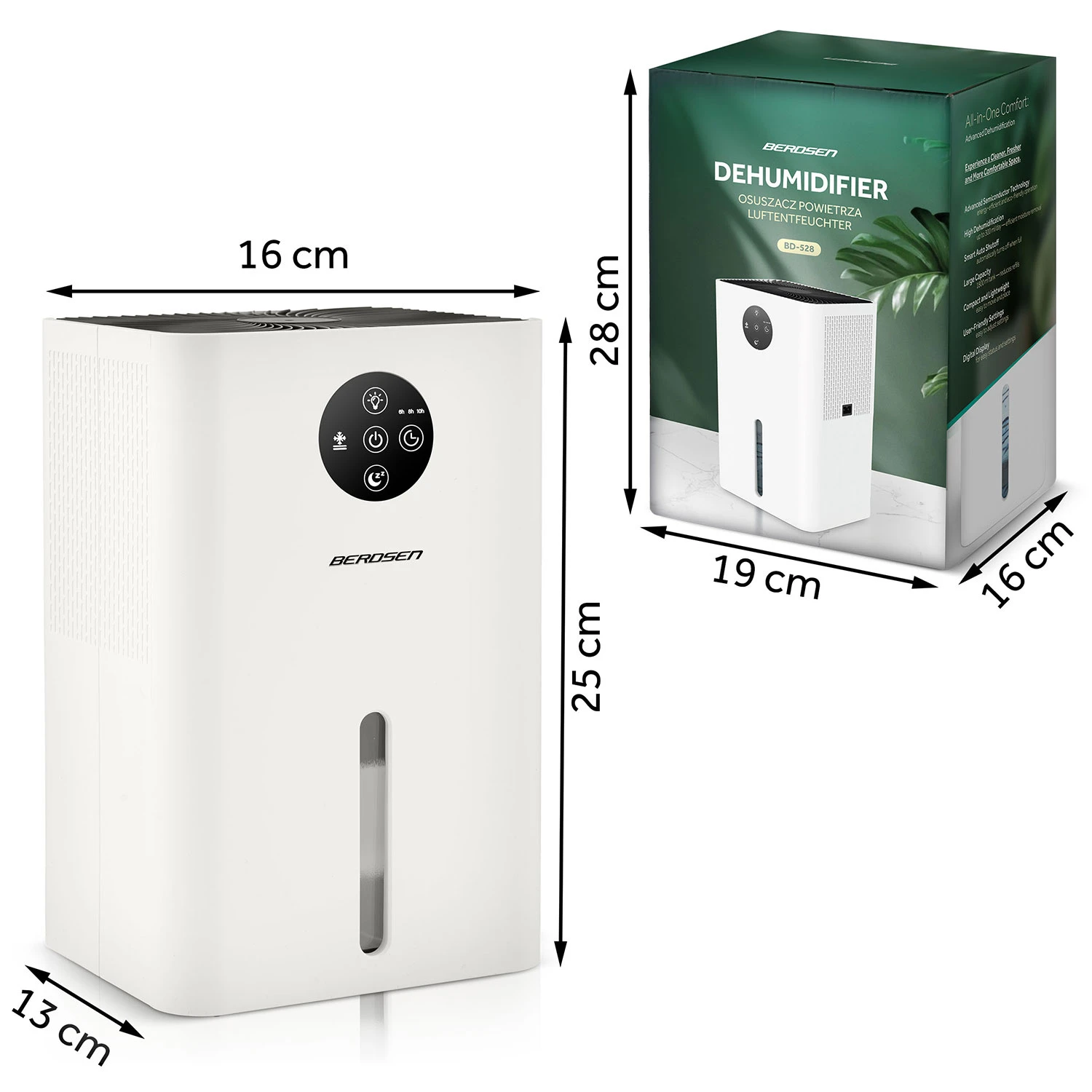 Odvlaživač zraka BD-528 je kompaktan, profesionalan i funkcionalan uređaj koji radi s maksimalnim kapacitetom od 300 ml/dan . Odvlaživač zraka BD-528 radi na principu kondenzacije, koja učinkovito kondenzira vlagu iz zraka. To smanjuje koncentraciju gljivica, drozdova i neugodnih mirisa u prostoriji, a istovremeno povećava vašu udobnost.