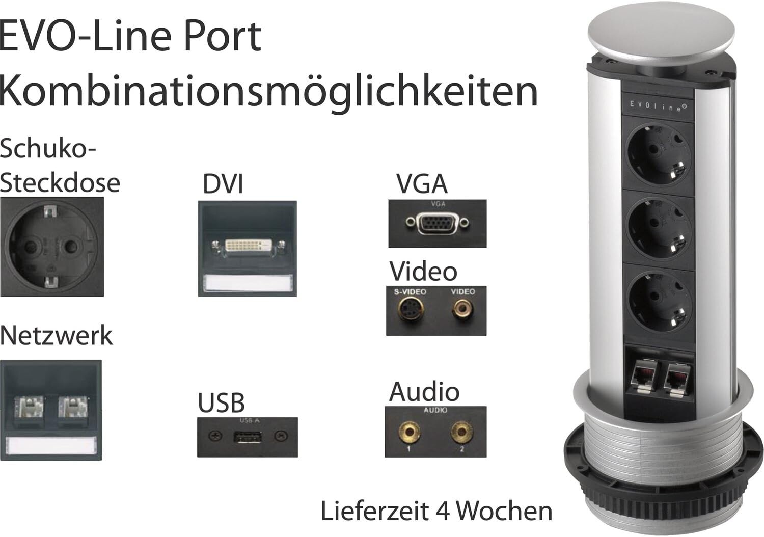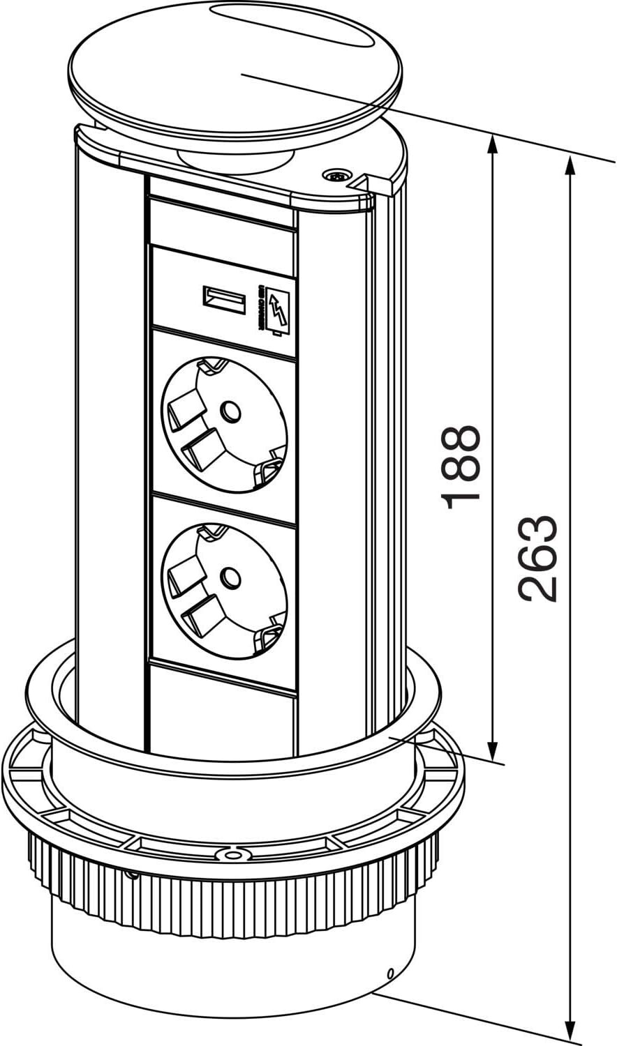 Malatec 1038 ugradbena izvlačna (pop-up) utičnica – 3×230 V + 2×USB je praktična, teleskopska utičnica za ugradnju u radnu ploču (kuhinja, ured, radni stol). Po potrebi je izvučeš prema gore, a kada nije u upotrebi kablovi i priključci ostaju diskretno skriveni ispod ploče, što pomaže održati radnu površinu urednom.